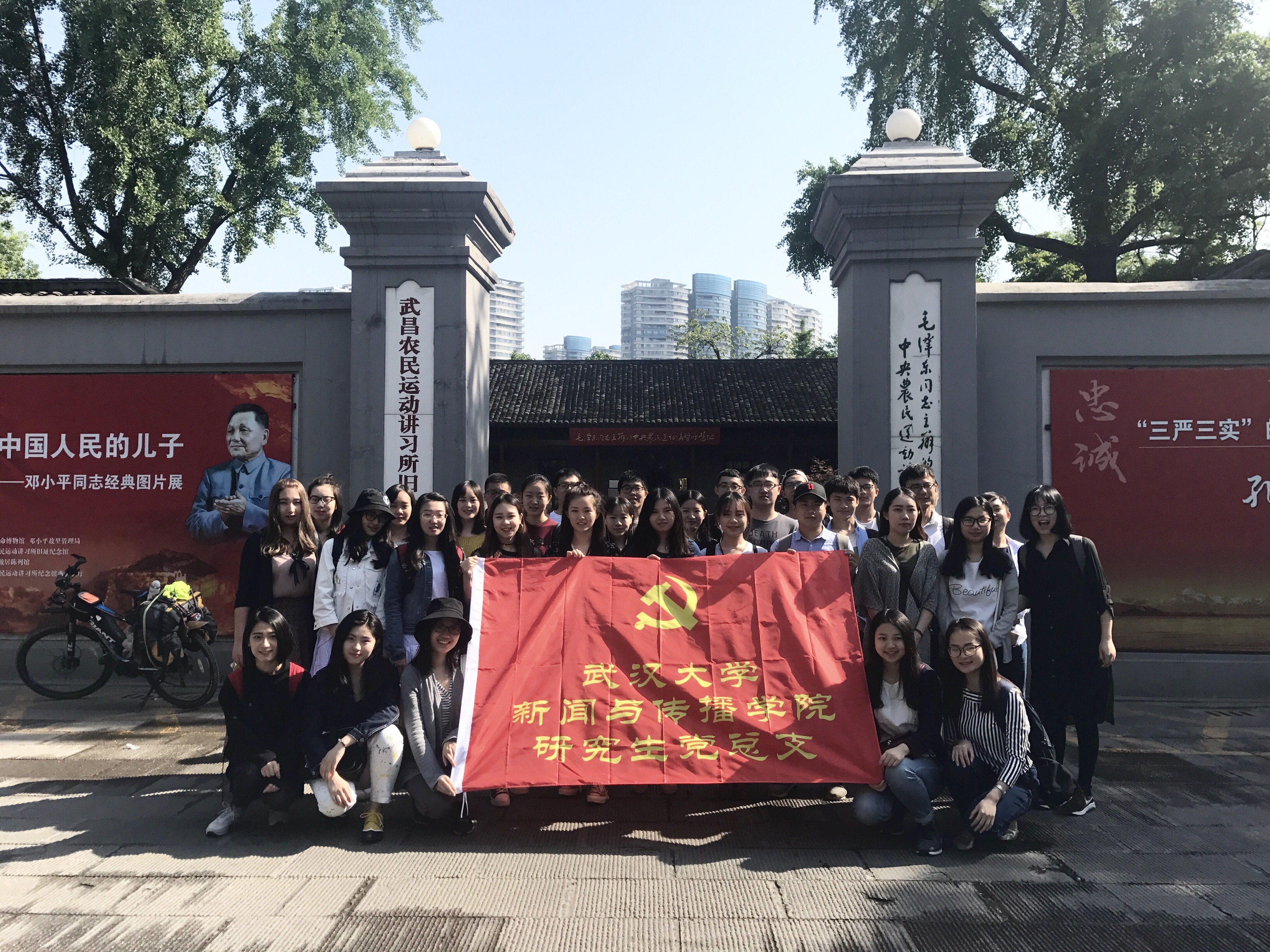 (游欢)2017年4月29日,为了进一步落实“两学一做”学习教育,增强基层党组织凝聚力,提高研究生党员党性修养,新闻与传播学院研究生党总支举办了“回首革命历史,提高党性修养”的主题党日活动,21名党员、13名入党积极分子来到位于武昌红巷的武汉革命博物馆进行参观学习。同学们在讲解员的引导下,主要参观了中央农民运动讲习所旧址纪念馆、毛泽东同志旧居纪念馆、中共五大会址纪念馆等革命旧址,通过馆内历史图片、文字资料、实物展示以及讲解员的耐心讲解,回顾了武昌的光辉革命历史,进一步了解了革命先辈的英勇事迹,重温了党领导中华民族艰苦奋斗实现民族独立自强的伟大历程。