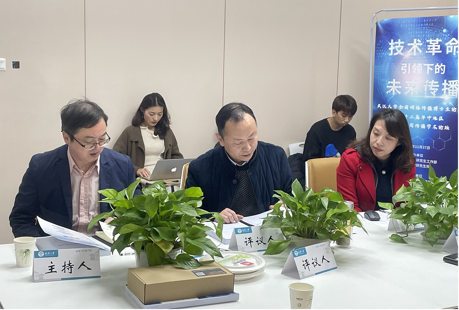 武汉大学新闻与传播学院教授谢湖伟、武汉大学新闻与传播学院副教授王朝阳作为评议人,对同学们的论文进行了细致点评。