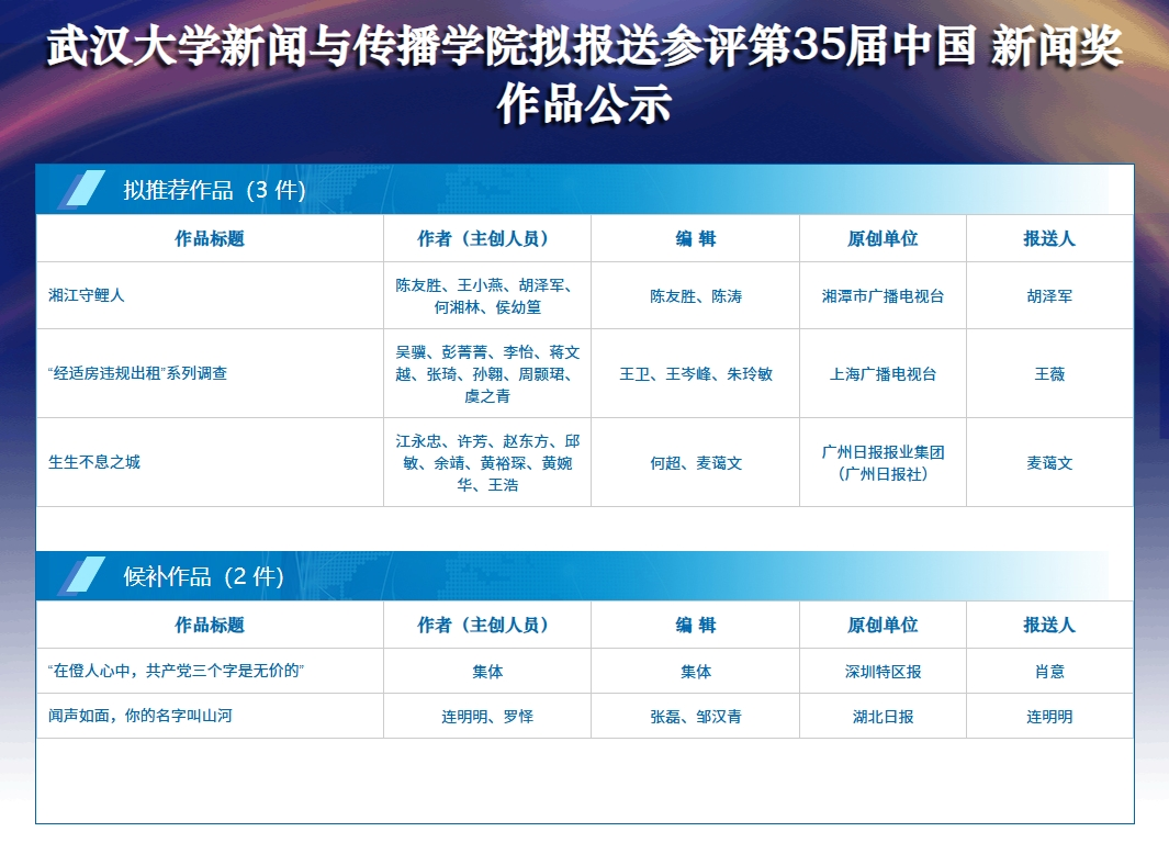 武汉大学新闻与传播学院拟报送参评第35届中国新闻奖作品公示