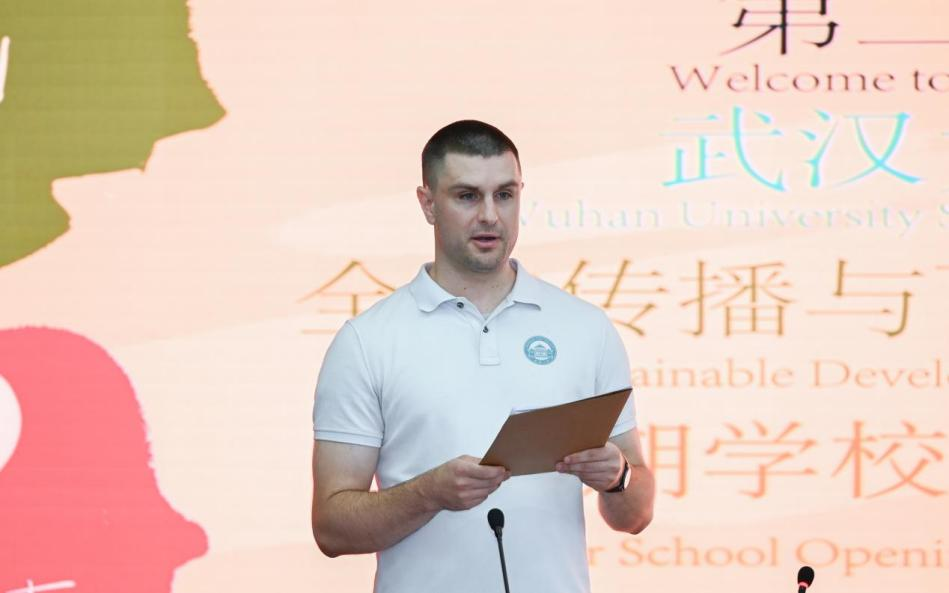 其后,武汉大学新闻与传播学院副院长吴世文教授代表学院致欢迎辞。他回顾了2024年首届暑期学校的丰硕成果,活动吸引了44位中外学子参与,获得新华社、《中国日报》及斐济国际媒体等关注与报道,并以此形成了与乌兹别克斯坦塔什干国立经济大学、越南新闻与宣传学院、加拿大魁北克大学等高校的良好交流合作机制。他指出,学院依托国际传播特色研究和基地建设,致力于将“全球传播与可持续发展暑期学校”打造为中外青年交流的可持续品牌,并特别感谢纪莉教授团队的付出及湖北省委宣传部、湖北省长江文化研究院的大力支持。