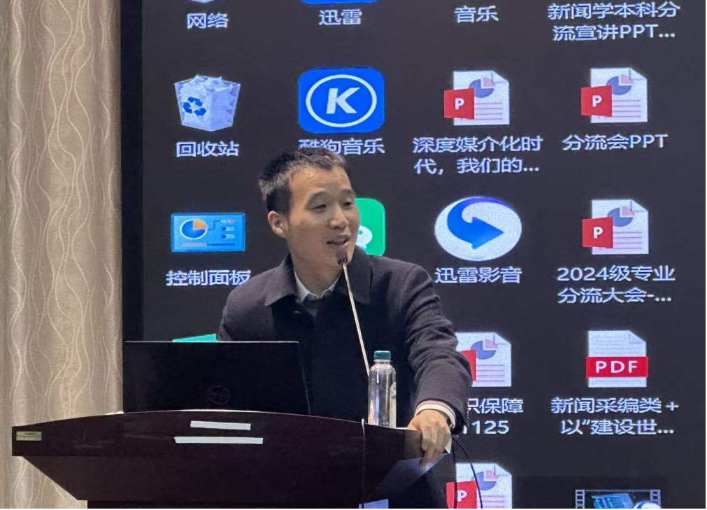 11月27日14:30,武汉大学新闻与传播学院2024级本科生专业分流大会在学院三楼报告厅举行。分管学院本科教学工作的副院长董庆兴老师,新闻学系王敏老师、周呈思老师,广播电视学系刘吉桦老师、陈凯宁老师,广告学系廖秉宜老师、慕文龙老师,网络传播系肖珺老师、王朝阳老师,本科办主任杨力老师,团委书记胡静文老师,本科教学秘书李闱老师等教师代表出席会议。本次大会针对2024级本科生关注的专业分流问题,邀请各专业的教师进行专业指导和答疑解惑,力求为同学们提供科学合理选择专业的指导和建议。会议由2024级播音与主持艺术专业的本科生雷灏渝主持。
